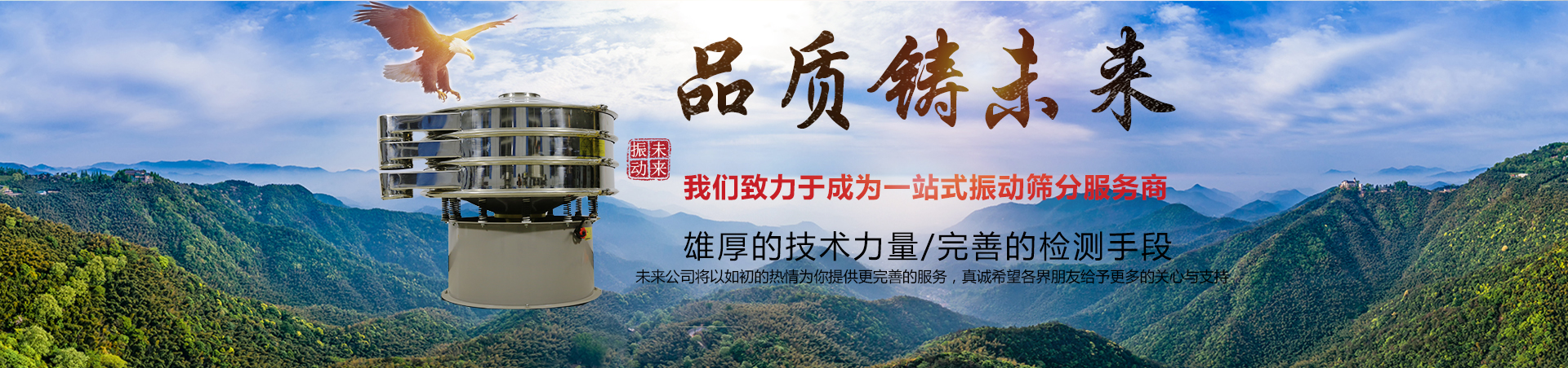 完美品質鑄就未來  新鄉市未來振動設備有限公司**生產標準多層振動篩,陶瓷泥漿專用振動篩,面粉專用篩分機,淀粉專用振動篩,超聲波振動篩,超靜音振動篩等等振動篩及其配套用振動電機,設備配件?! ∥磥砉臼巧a振動篩分設......